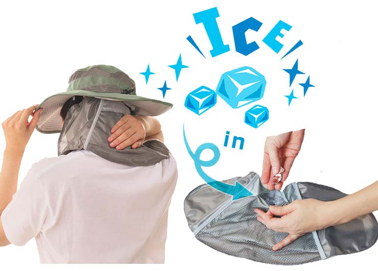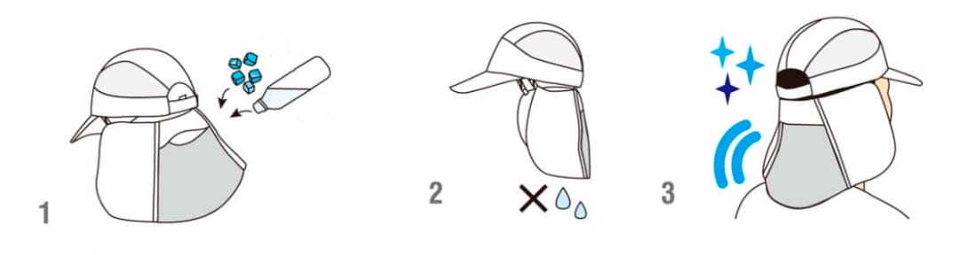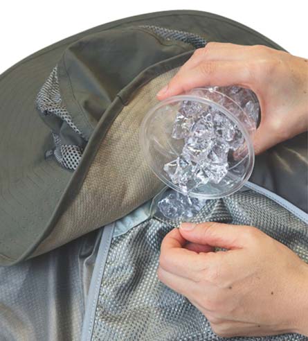 Fibra súper absorbente de agua y sudor que con el calor vaporiza refrescando la nuca y la parte superior del cuello.