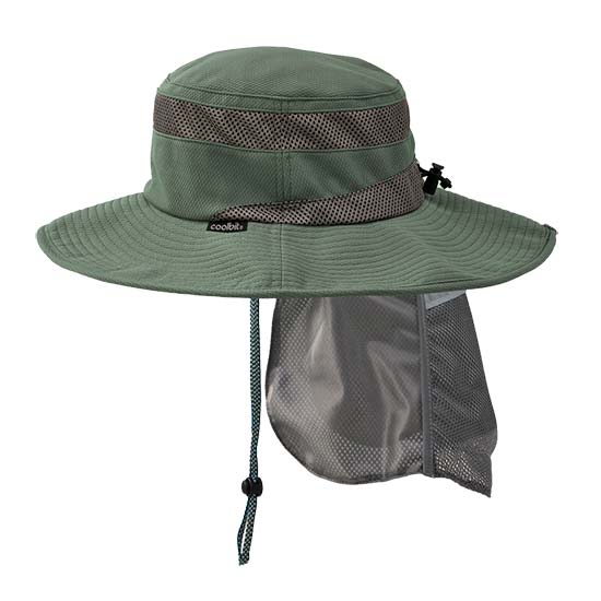 Fibra súper absorbente de agua y sudor que con el calor vaporiza refrescando la nuca y la parte superior del cuello.